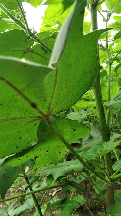 Mere kapas mein pattiyon ke upar kale dhabbe dikhai de rahe hain aur aur UN per kshetra ho rahe hain kripya ilaaj bataen