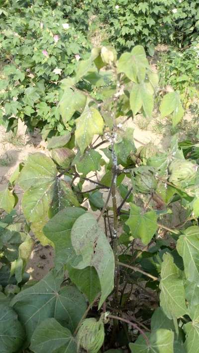 कपास का पोधा पीला हो रहा है और धीरे धीरे सुख रहा है