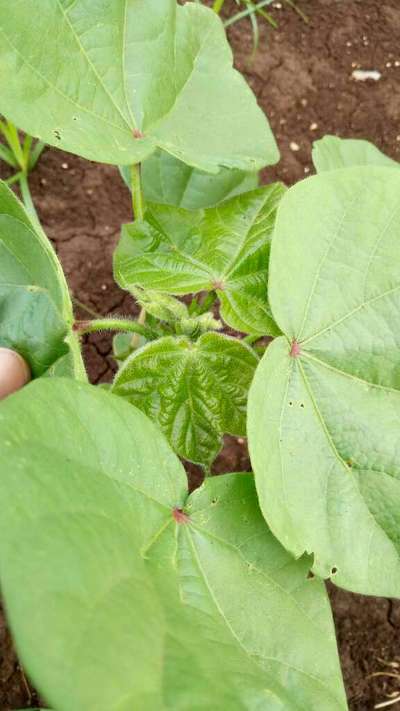 नई पत्तिया सिकुड़ी हुई है और किट का नमो निशान भी नही है