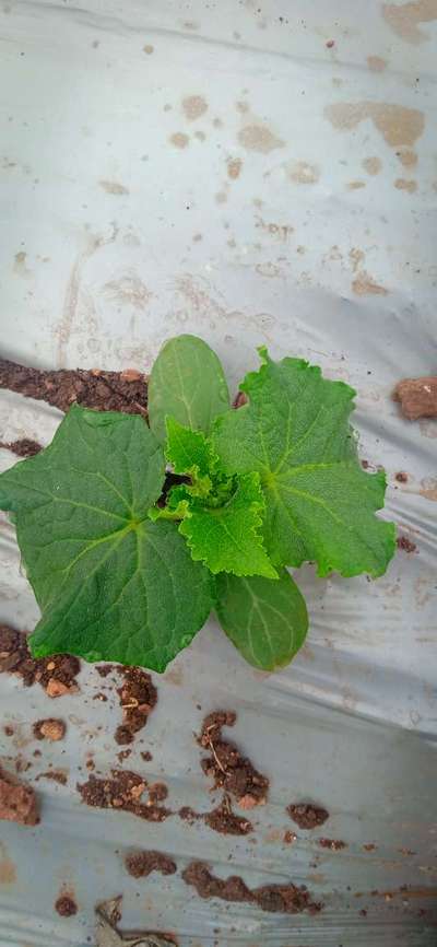 ये खीरा का पौधा है नेट हाउस में इसकी पत्तियां कुक्ड रही है क्या उपाय है