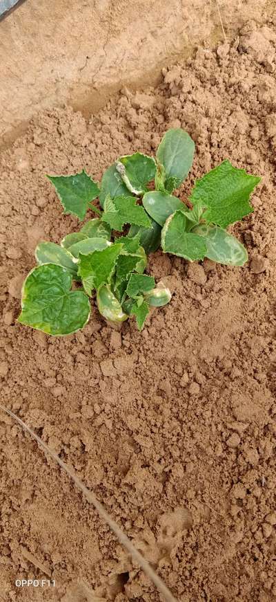 पत्ति के रंग में बदलाव, पीलापन सुरू हो रहा है खीरे मैं