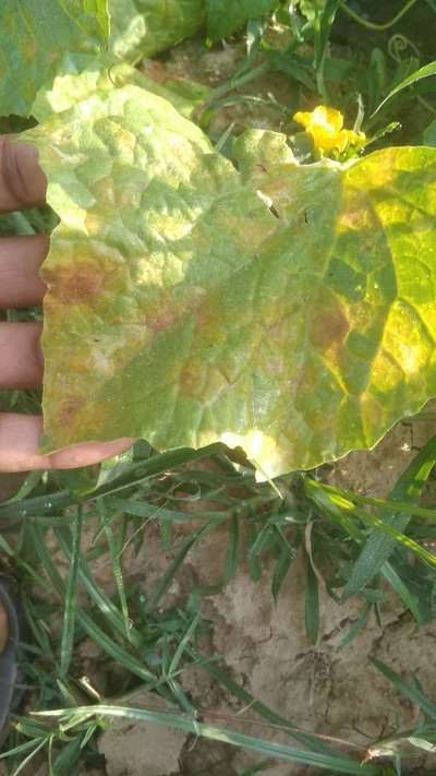 खीरे पर लाल पीले रंग के पत्तियों पर धब्बे पड़ रहे हैं जो कि पूरा खेत पीला पड़ता जा रहा पत्तियां खराब हो रहे हैं इस पर कौन सी दवा का स्प्रे किया जाए कि सही हूं