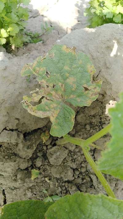 पत्ति के रंग में बदलाव, पीलापन सुरू हो रहा है खीरे मैं