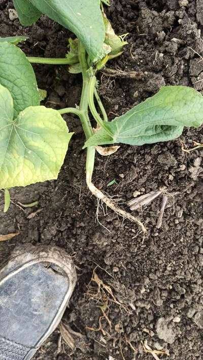खीरा में पत्ते पीले एवं जड़ के उपर सूखने की समस्या