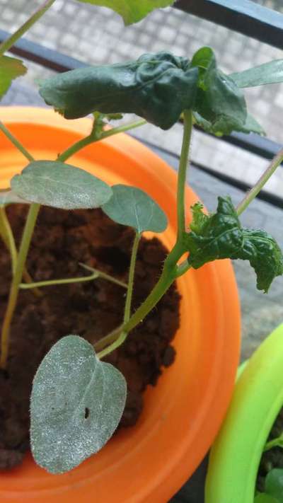 भिंडी के पत्ते स्वतः ही सुकुड़ रहे हैं। इनको ठीक करने के लिए मैं क्या करूँ।