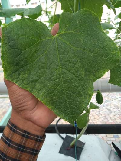 लोकी के पत्ते नीचे के तरफ मुड़ रहे है और पीले हो रहे हैं