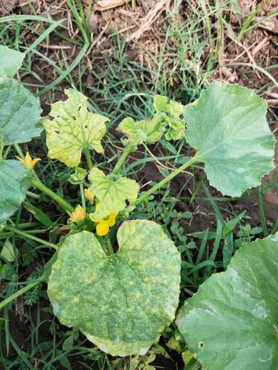 खीरा के पत्ते नीचे से बिना पिला हुए सूख रहा है यानि लगता है कि जल रहा है