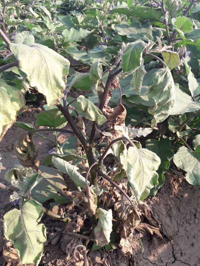 Sourav Sankar Pls ck if your plant is suffering from Water Deficiency and already affected by Brinjal Shoot and Fruit Borer. Please incorporate with Carbofuran followed by irrigation. It controls both shoot borer and nematodes.