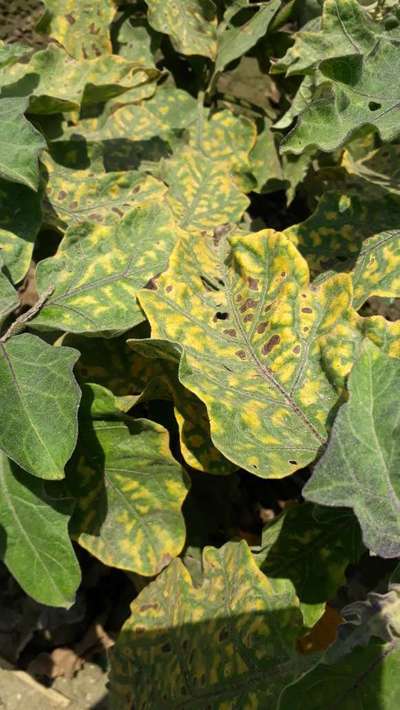 बैंगन के पते पिले हो के गिर रहे ह ओर सफेद रंग के किट खत्म नही होते । अचे फल मिलते ही नही बेगन में चमक भी खत्म ह। । तन छेदक भी खत्म नही हुआ। पेड़ बहुत अचे से खड़े ह पर फल नही ह