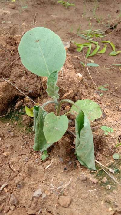 बैगन की पत्तियां ऊपरी और से मudड़ रही है