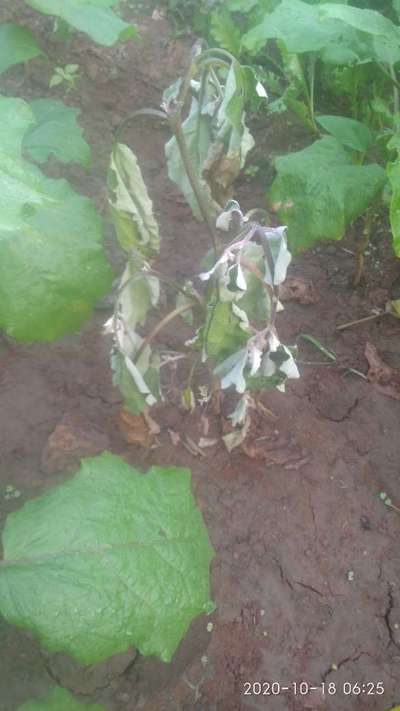 बैगन का पौधा एक के बाद एक करके जड़ से मर जाता है ।जड़ उखाड़ने पर कोई कीड़ा या और कुछ का पता नही चलता है बाकी सुरु एक से हुवा था अभी पूरा फसल ही नष्ट हो रहा है।