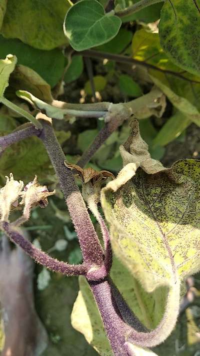 बैंगन कि पत्तें किनारें से सुखने शुरू हो रहा है जो धीरे-धीरे सम्पूर्ण पौधें को जकड़ रहा है जिससे पौधें मुर्झा कर मर रहें हैं ।कृपा कोई निवारण का सुझाव बतायें ।