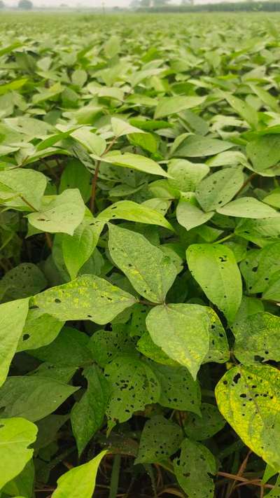 Rajendra नमस्ते आप की फसल में पिस्सू भृंग (फ़्ली बीटल) लगा है 👆 ऊपर दिए गए हरे लिंक को दबाए और अपने फसल के साथ लक्षण का मिलान करे plantix पुस्तकालय के माध्यम से नियंत्रण की जानकारी प्राप्त करे। 😊 किडों के निवारण के लिये डेल्टामेथ्रीन + निमतेल का छिडकाव किजीए