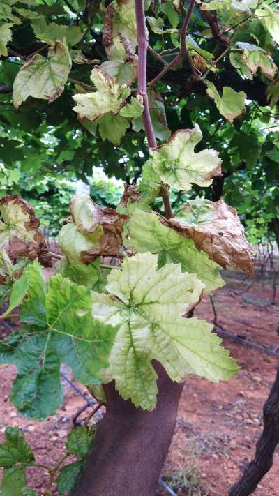 अंगूरकी की बेल के पते पीले रंग के हो रहें हैं