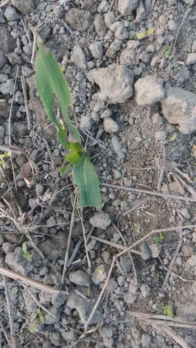मक्का के पोधौ का सफेद होना व पत्ते मे छिद्र हो कर पोधा रोग ग्रसत हो जाता है।