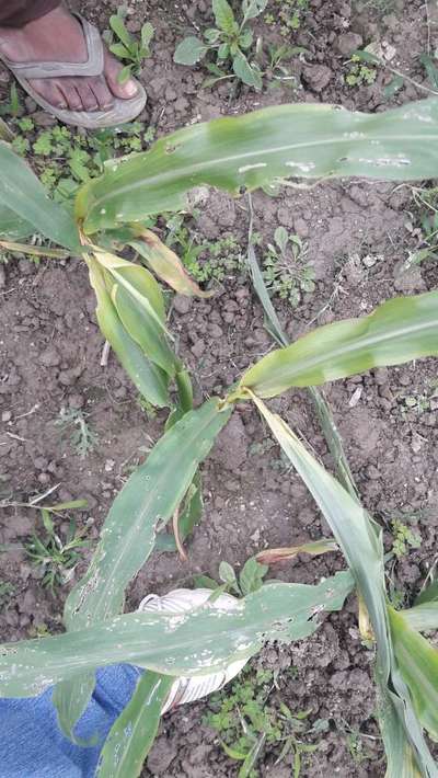 मक्के का पत्ता लाल रंग का हो गया है ।