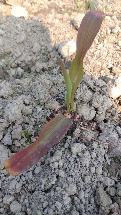 मक्के का पत्ता लाल रंग का हो गया है ।