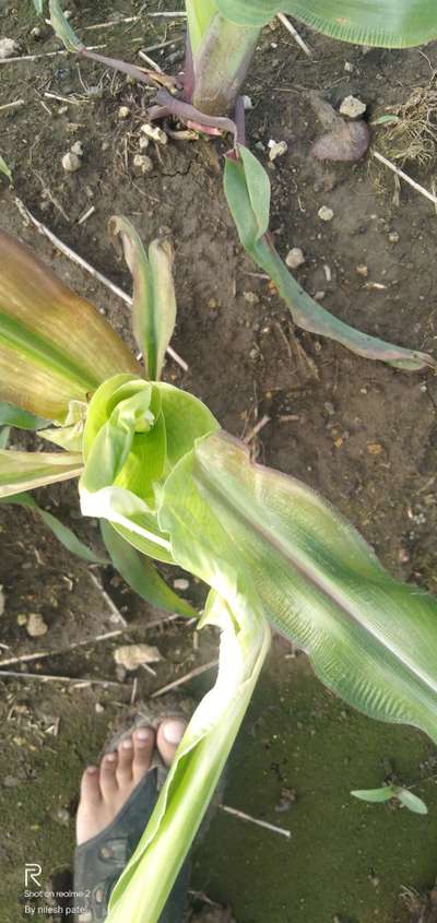 मक्का की पत्तियां और कलियां पीली पड़ रही है और बाढ़ रुक गई है और पौधे में शुकराना रही है
