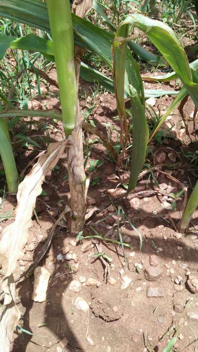 मक्का के ताने के पास की पत्तियो में धब्बे बन कर पत्तियां चूख रही हैं
