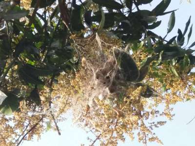 आम में मकड़े के जाल से मंजर सूख गया है और पानी/ लाही टपकता है उपचार बताऐ
