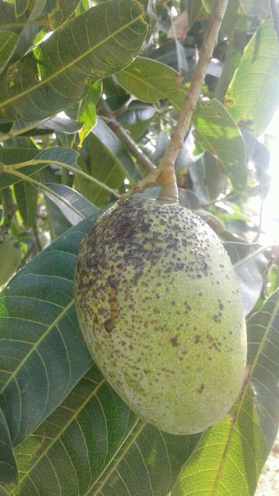 आमो पर काले धब्बे। तरल भी बह रहा। पत्तियो मे कोई बदलाव नही।