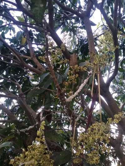 Mango ke tree ke tahaniyo me saphed saphed hogaya hai