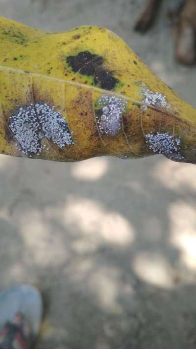Aam Ke paude me safed rang Ke keet lag rahe hai Jo pattiyo ko sukha de rahe hai