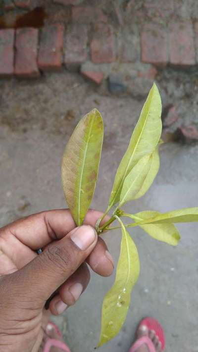 Pintu आप के फसल पोषक तत्व की कमी है आप जड़ के पास गोलाकार गढ्डा करके 20 kg गोबर खाद डाले 200 ग्रा यूरिया जड़ से कुछ दूर में डाले 180 ग्रा ssp 120 g MOP उर्वरक डाले ठीक हो जाएगा