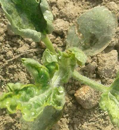 Hi Anil Kumar , melon is affected by sucking insect pest like thrips and whiteflies. For control to spray on imidacloprid 0.6 ml per liter of water. More information review at Whiteflies and Thrips . Thank you