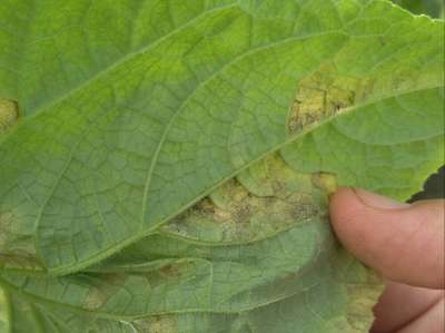 यह Downy Mildew of Cucurbits का प्रभाव है। हरे लिंक पर क्लिक करके अधिक जाणकारी प्राप्त किजीए