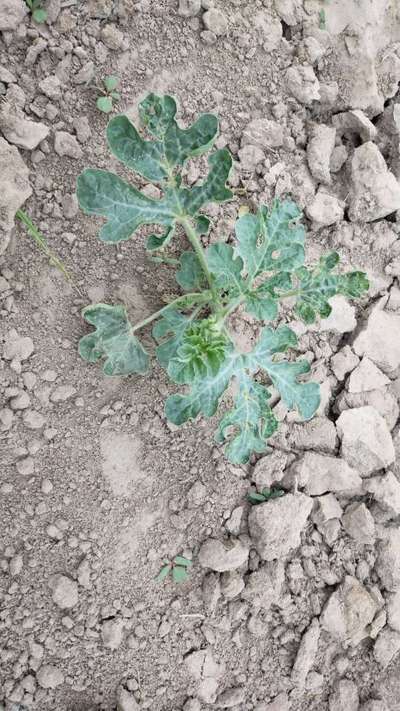 Kharbuje ki pattiyon ka rang Pila hai aur kuchh pattiyon Mein Chhed bhi hai aur kuchh Lal Rang ki Makkhi bhi hai