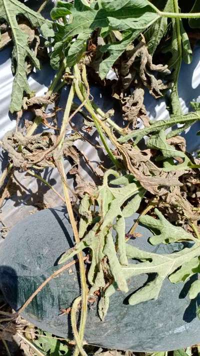 Gordhan Dangi नमस्ते आप तने जड़ को चेक करे सुखना कान्हा से स्टार्ट हो रहा है Fusarium Wilt Gummy Stem Blight of Cucurbits ऊपर दिए गए हरे लिंक को दबाए और अपने फसल के साथ लक्षण का मिलान करे plantix पुस्तकालय के माध्यम से नियंत्रण की जानकारी प्राप्त करे।