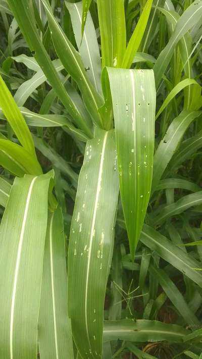 बाजरे के पत्तों में छेद और ऊपर से कट लग रहा है