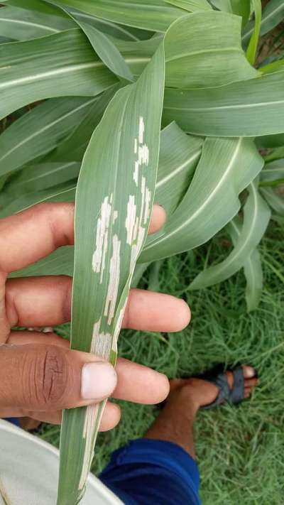 बाजरे के पत्तों में छेद और ऊपर से कट लग रहा है
