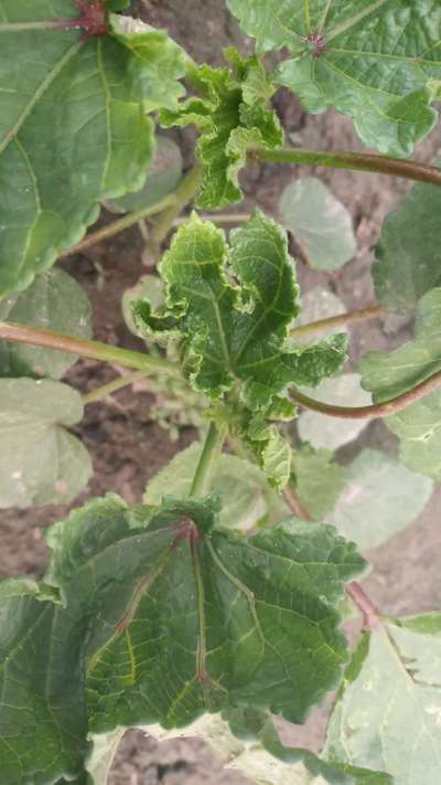 भिंडी की ऊपरी पत्तियों में इस प्रकार की सिकुड़न है क्या वजह हो सकती है और उपचार क्या होगा