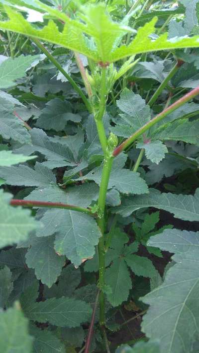 Hi Ravi Raj , okra is affected by jassids insect pest . More information for diagnosis and control measures review at Leafhoppers and Jassids . Thank you