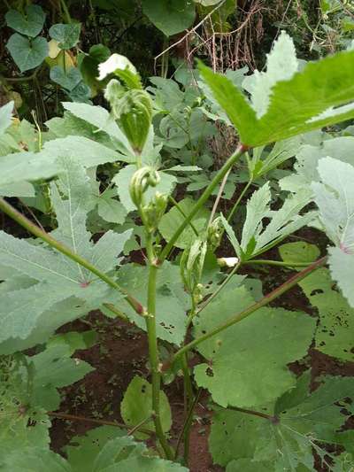 भिंडी का उपरी हिस्से जो नया पत्ता निकाल रहा है ओ मुडा हुआ और चमकीले है फूल नहीं आ रहा है क्या करना चाहिए