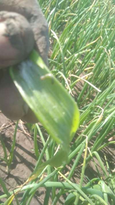 Pyaaj ki pattio me pani ghus gaya he. Pattiya pili or payaj nicha sa sad rha he
