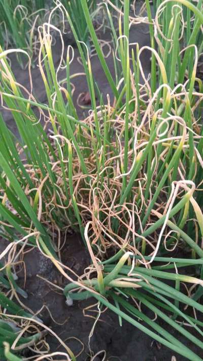 हमारे प्याज के पत्ते पीले पड़ गए हैं क्या समस्या है प्याज में