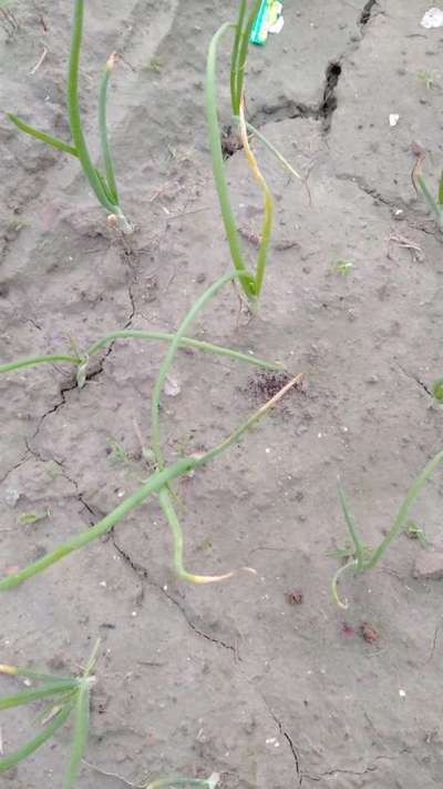 सर प्याज का पत्ता उलझ रहा है और टेढ़ा हो रहा है