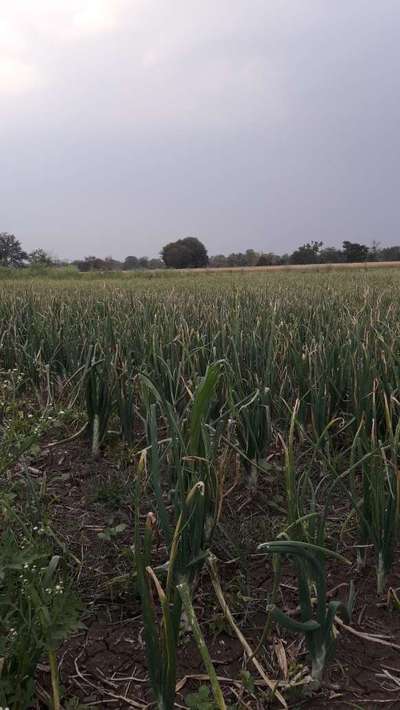 प्याज की पत्ती जली जली हो रही है और पौधा नीचे बैठ रहा है