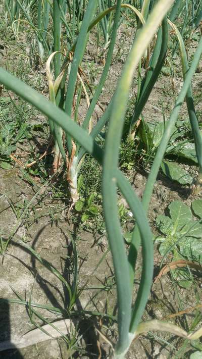 सर प्याज का पत्ता उलझ रहा है और टेढ़ा हो रहा है