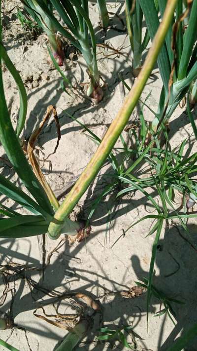 प्याज के पत्ते उपर से पीले हो रहे हैं
