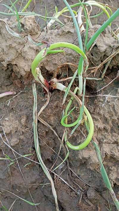 प्याज की पत्ती नीचे गिर गई है