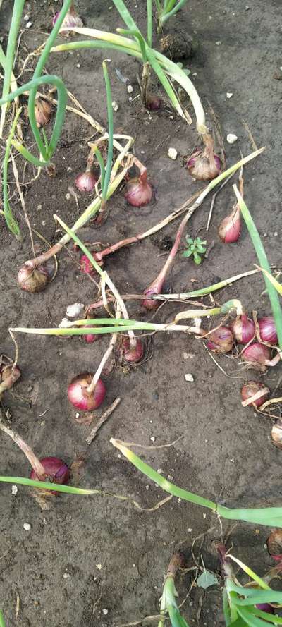 पत्ते सुख कर कान्दी का रुप ले रहे हैं और प्याज फुगने कि सम्भावना लगभग खत्म हो गई क्या करें