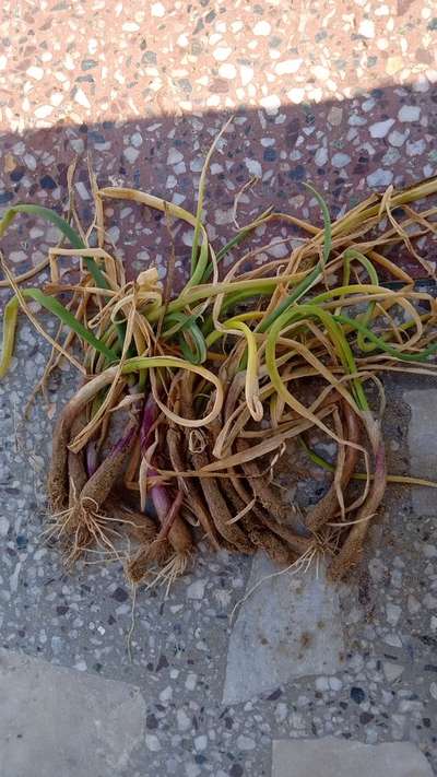 Pyaj ke patte sukh rahe hain aur phool nahin liya bilkul bhi