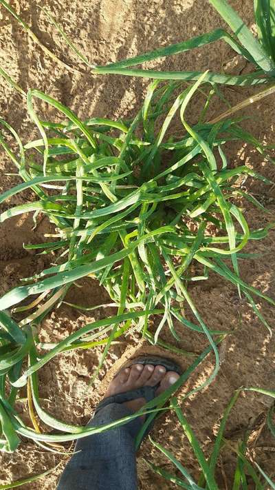 प्याज के बीज की फसल के पते पिले पड़ गे