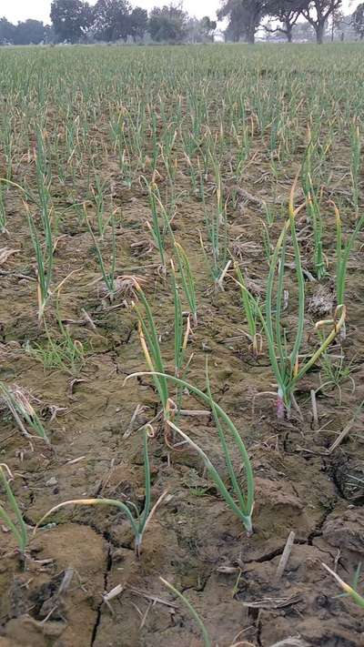 प्याज की नर्सरी में पौधो के पत्तो के उपरी सिरे सुख रहे है ओर ग्रोथ भी कम हो रही है कुछ उपाय बताए