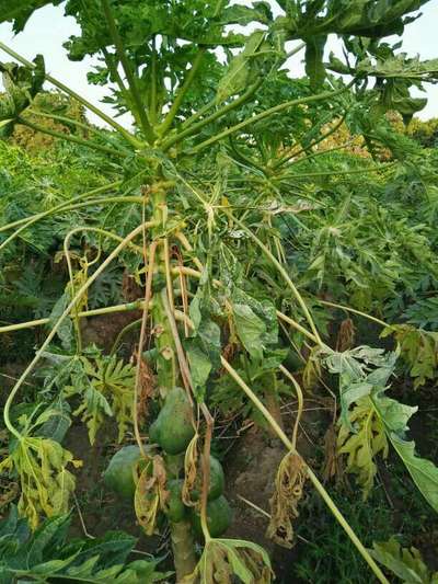 पपीता के सभी पत्ते सिकुड़ रहे हैं