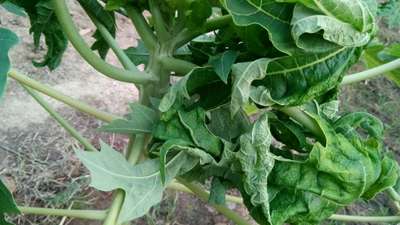 पपीते की पत्तियां अंदर की ओर मुड जा रही हैं ।